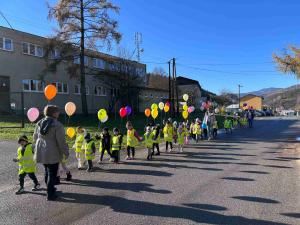 pochod našich škôlkarov ulicami obce až k obecnému úradu