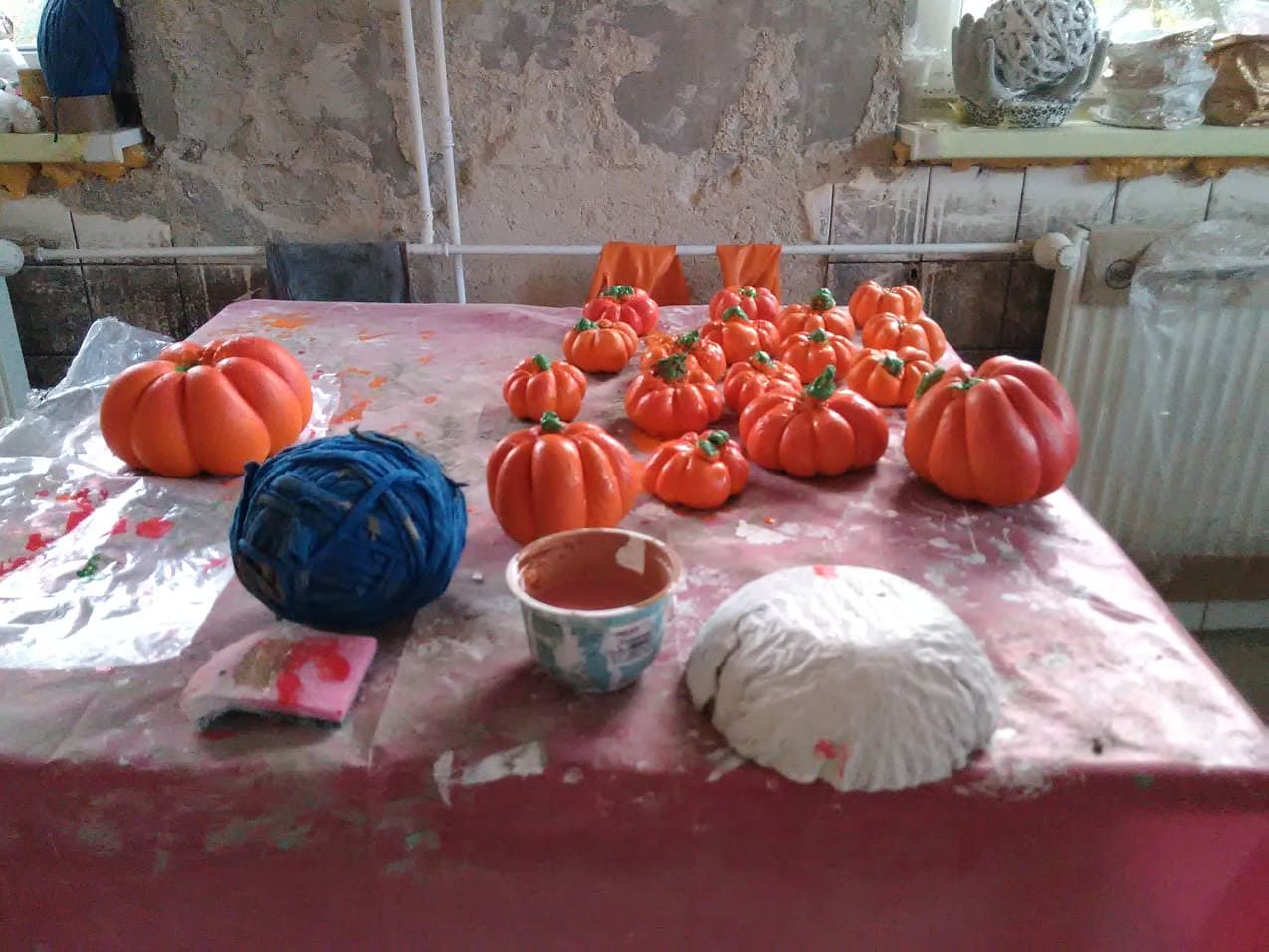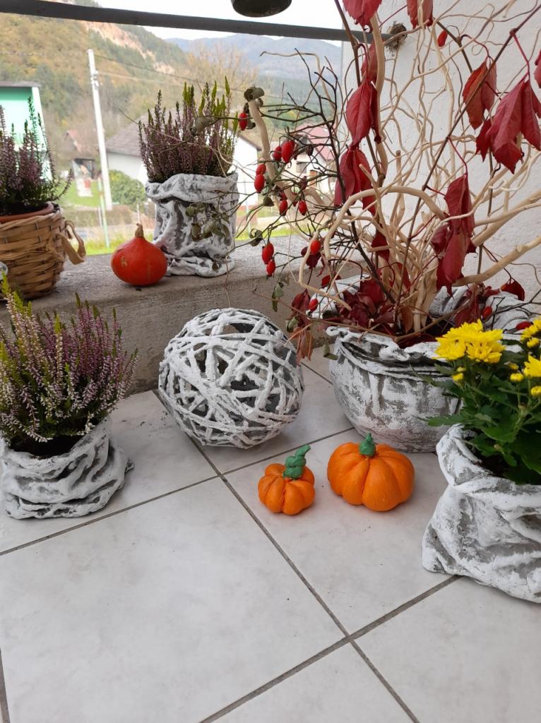 Naša práca sa začala papierovým pletením, uplietli venčeky a domčeky na dvere. Ďalšou témou bola práca s betónom. Táto technika má široký okruh nápadov k tvorivej práci a keďže každá z nás mala predstavu čo chce vytvoriť, tak sme sa spoločne pustili do tvorenia. Výsledkom boli kvetináče, svietniky, držiaky na fotky, tekvičky a betónové gule.